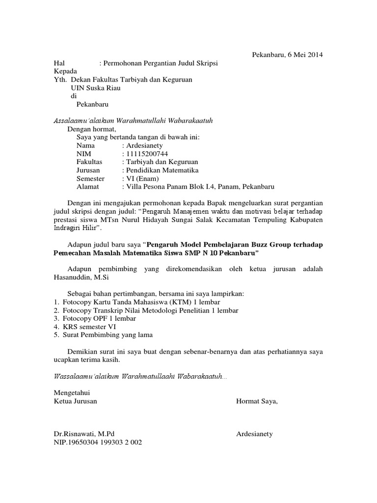 Contoh Surat Pernyataan Skripsi : Contoh Surat Permohonan Penelitian Skripsi